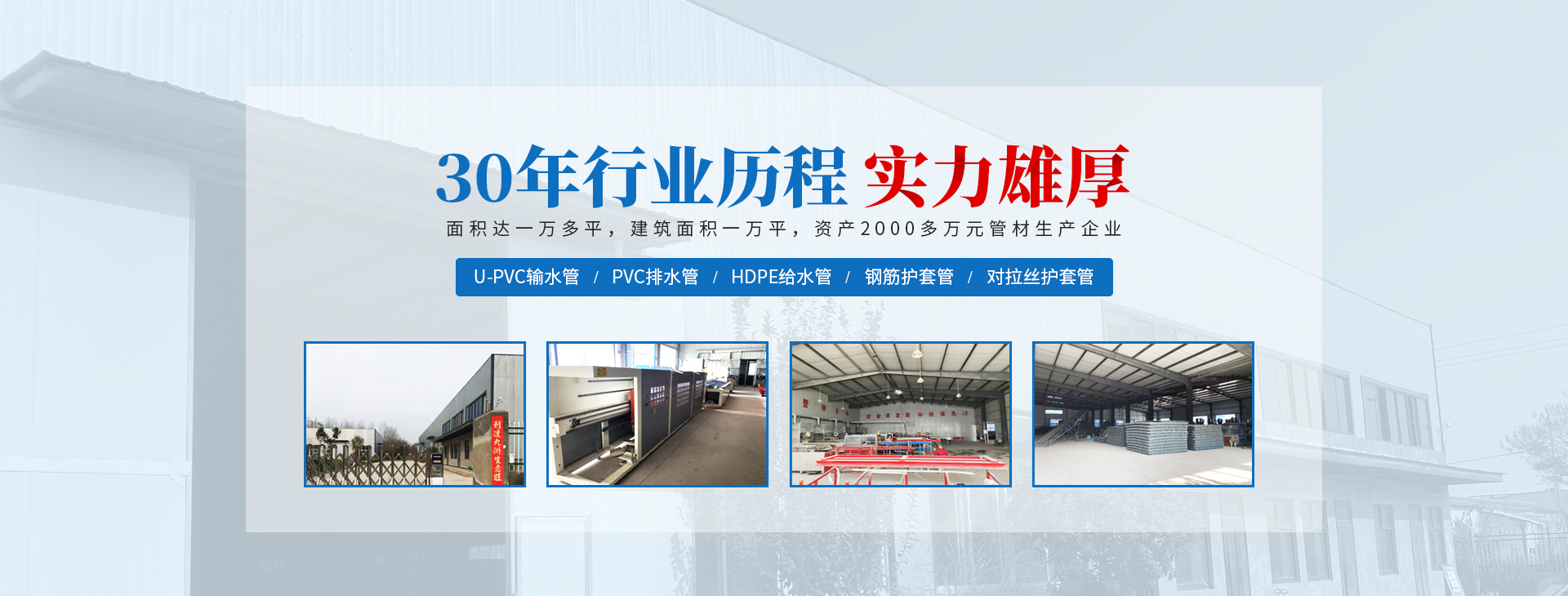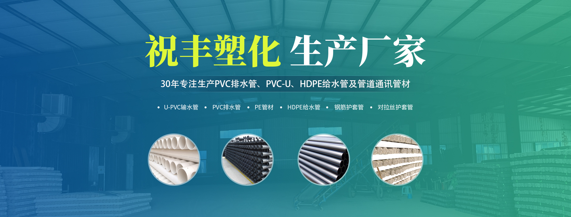 安陽(yáng)市祝豐塑化有限公司坐落在滑縣工業(yè)園區(qū),東臨大廣高速,西臨京珠高速,是鄭州、鶴壁、安陽(yáng)、濮陽(yáng)四個(gè)城市的輸紐,交通便利、環(huán)境優(yōu)美。 公司始建于八十年代,經(jīng)過二十余年的艱辛創(chuàng)業(yè),規(guī)模不斷壯大,由十多萬(wàn)元資產(chǎn)的小廠,發(fā)展到現(xiàn)占地面積達(dá)一萬(wàn)多平,建筑面積一萬(wàn)平,資產(chǎn)2000多萬(wàn)元管材生產(chǎn)企業(yè)。公司生產(chǎn)PVC-U、PVC排水管、HDPE給水管、鋼筋護(hù)套管管道通訊管材等產(chǎn)品,廣泛用于農(nóng)田節(jié)水、高山引水、人畜用水、建筑、電力通訊等多種用途,品種齊全。為了滿足用戶需求,可承攬各種給水、節(jié)水、灌溉工程。“祝豐塑化”憑借強(qiáng)勁的實(shí)力,優(yōu)良的管理水平。“以質(zhì)量求生存,以信譽(yù)求發(fā)展”的原則全力以赴和大家共同塑造美好未來。..